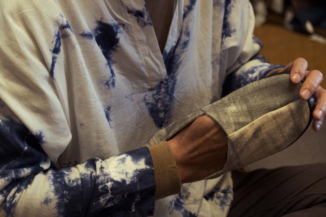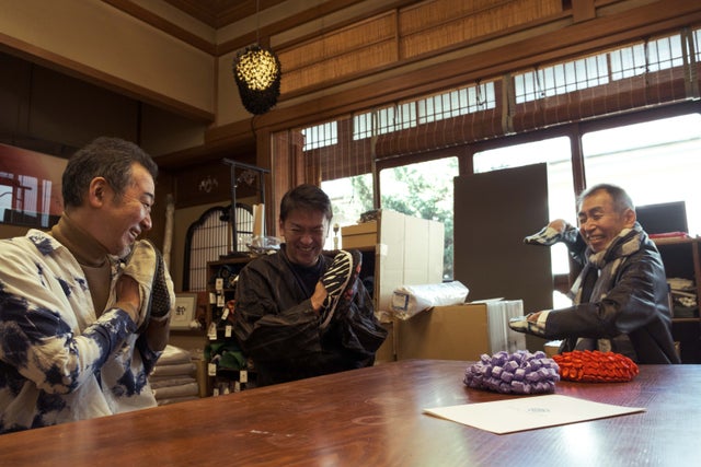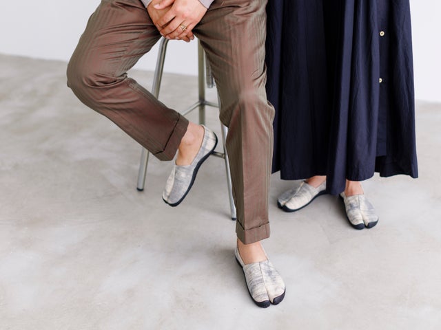 片山:藍染の絞りのイメージは足袋シューズにはすごく合っていると思います。ジーンズなどと合わせてカジュアルにもまた、カジュアルな着物にも併せて欲しいと考えています。ファッションと生活を楽しむ方に履いていただきたいと思います。