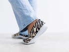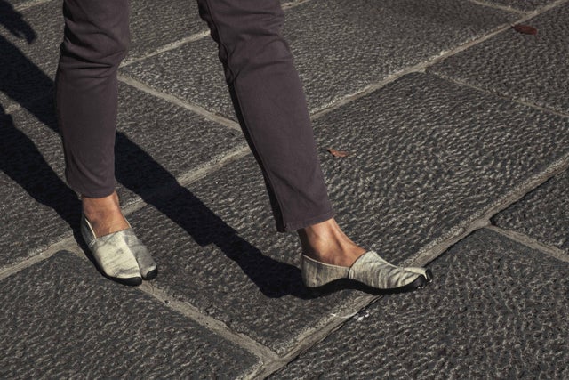 スリッポンタイプの雰囲気が手作業から偶然に生まれたかすれ感を引き立てる。