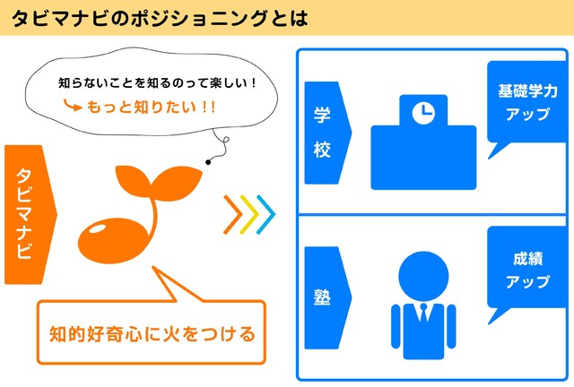 基礎学力を上げる公教育、成績を上げる塾などの教育とはまたちがった、「好奇心を刺激する」「自ら学ぶ意欲を生む」学習サービスです。