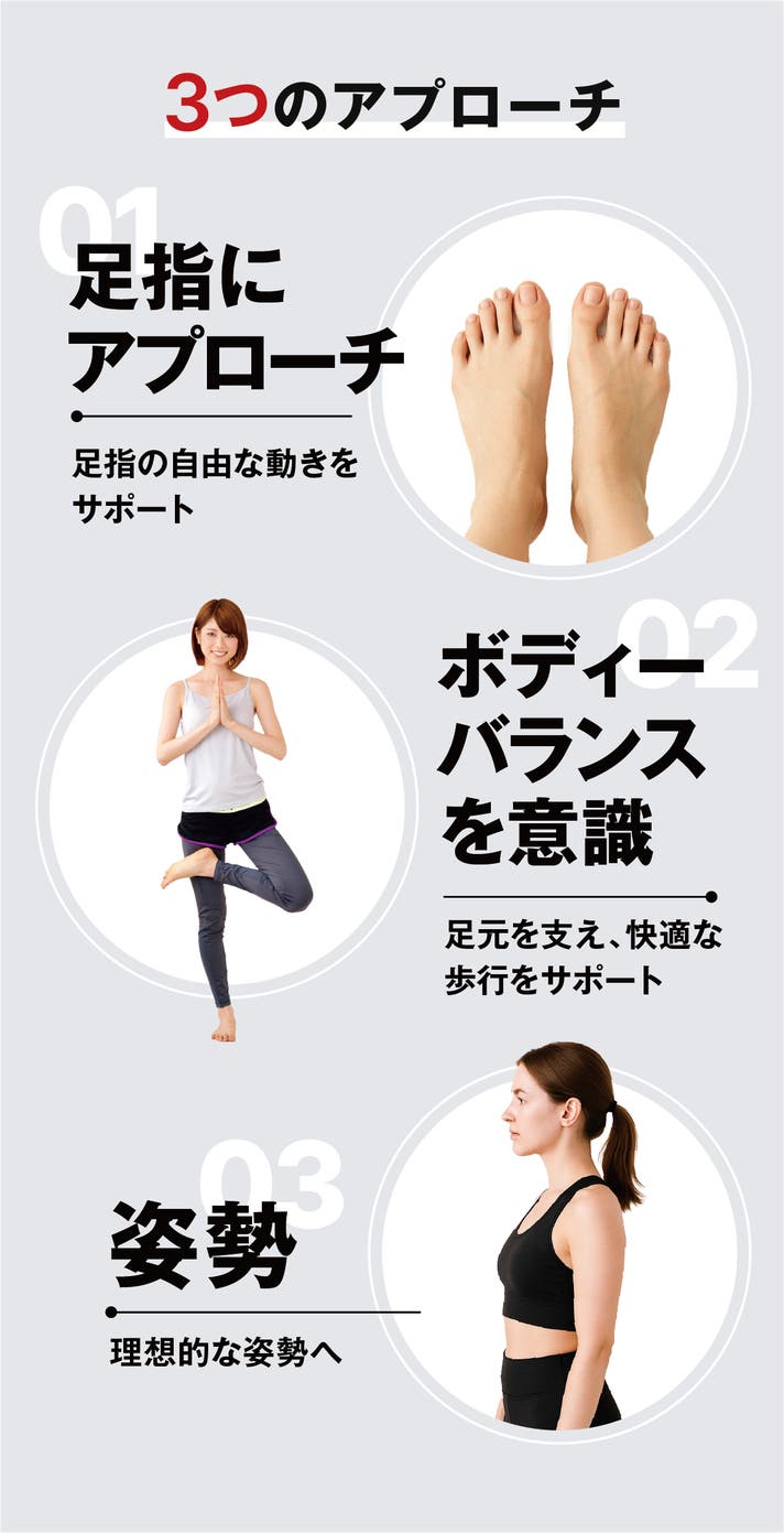 「足袋が健康に良いのは理解しているが、先割れのデザインに抵抗がある」という声を多くの方から聞き、丸五はその課題に応えるべく、足袋構造を取り入れたシューズの開発に取り組みました。
