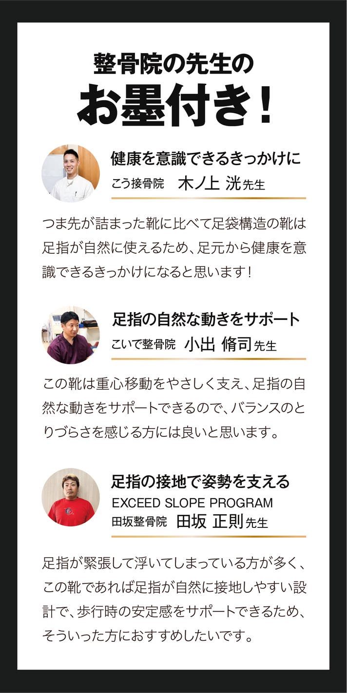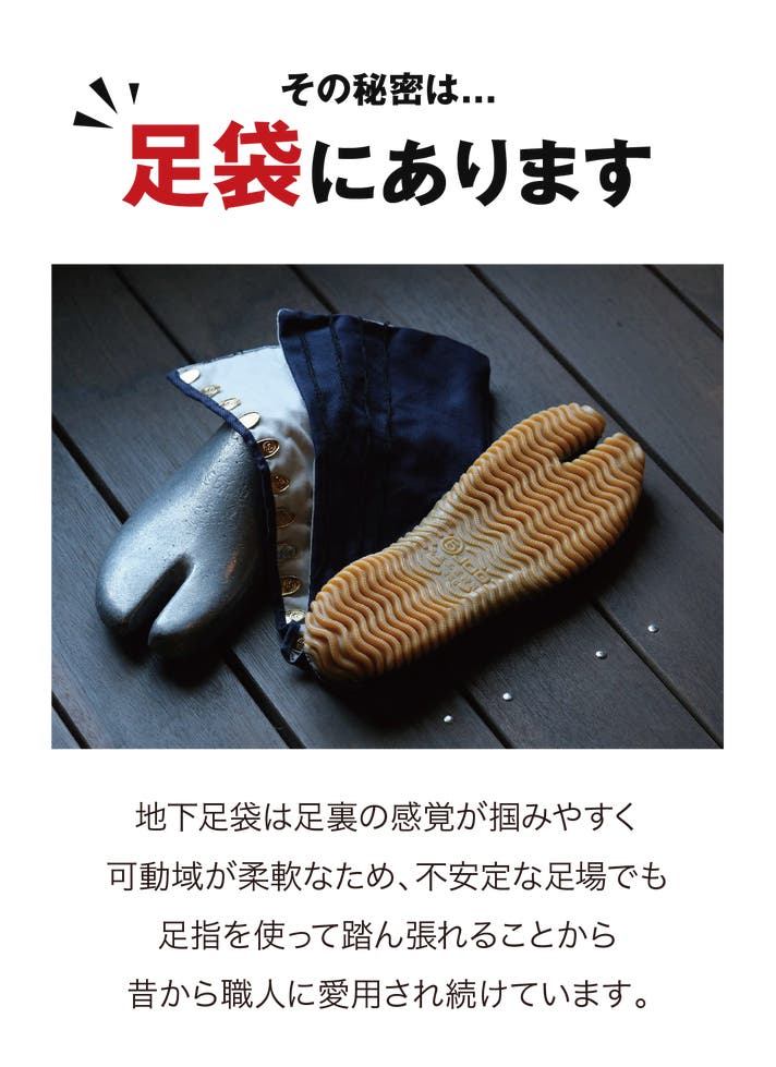 - 【特許技術】新発想インナー足袋構造で足指の自然な動きをサポート