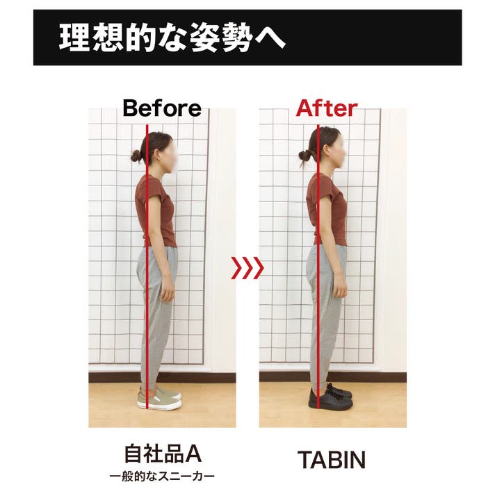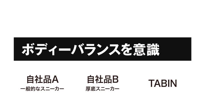20代男性5名と女性1名を対象に、それぞれ第三者機関の協力のもと弊社が実施した試験結果に基づくものです。弊社従来靴(足袋型でない靴)と本品をそれぞれ着用した際を比較。※本試験は弊社条件下で行ったものであり、結果を保証するものではありません。