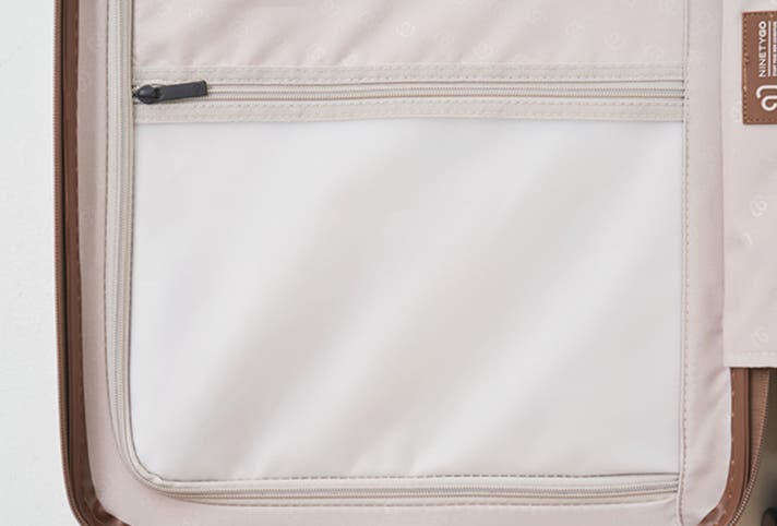 旅楽スーツケースの前開き設計(※20インチのみ)なら、立てたままスムーズに開閉可能。混雑した駅や空港でも、よく使う小物類や電子機器を手早く出し入れできます。