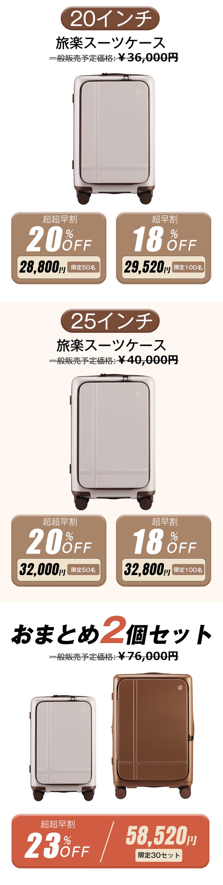 【超超早割】旅楽スーツケース2個セット(20インチ×1個、25インチ×1個)