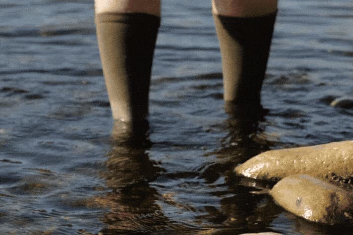Q4:長靴/防水シューズがあっても必要?普通の靴+このソックスだと靴は濡れる?