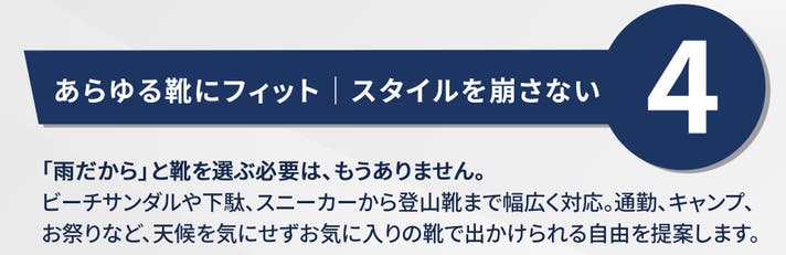 - 素足のような心地よさと、長靴のような頼もしさ。手持ちの靴を、雨の日でも選べる一足へ
