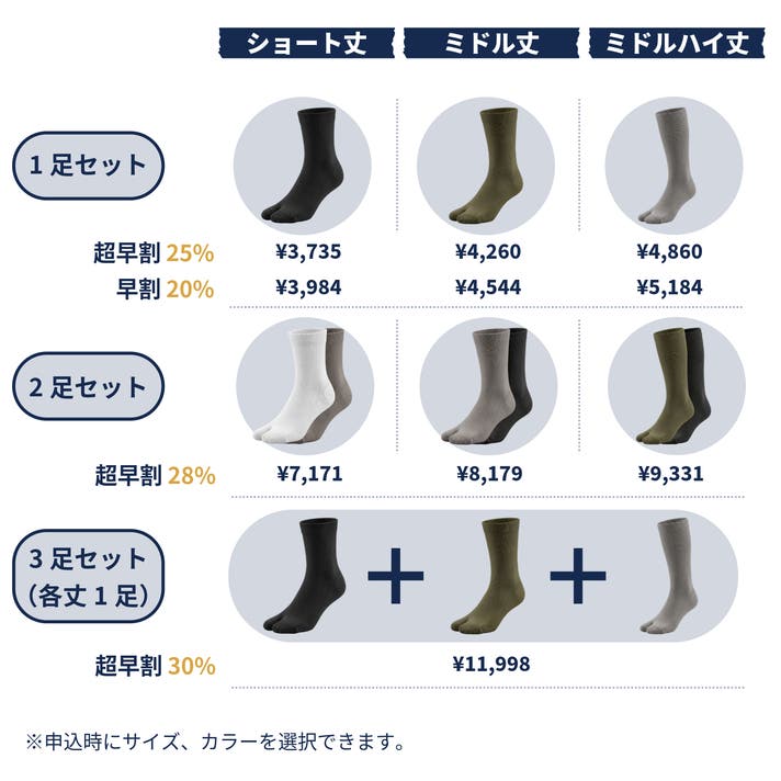 *超早割 50名様限定* 防水透湿タビソックス 3丈セット(各丈1足)