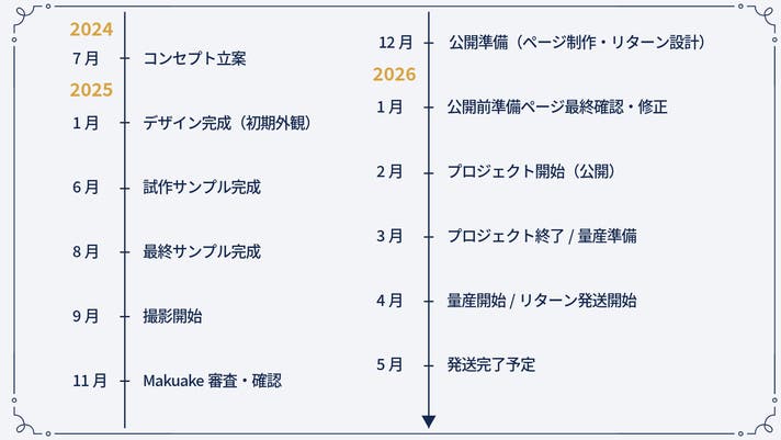 このプロジェクトはAll in型です。目標金額の達成に関わらず、プロジェクト終了日の2026年03月30日までに支払いを完了した時点で購入が成立します。
