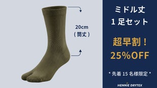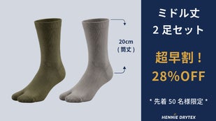 *超早割 50名様限定* 防水透湿タビ ミドル丈 ソックス 2足