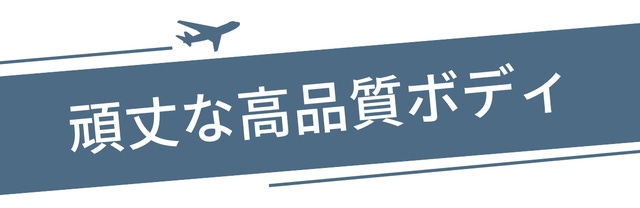 - 飛行機の窓ガラスにも使用されるポリカーボネート素材を使用。衝撃に強く、ボディに傷が付きにくい。