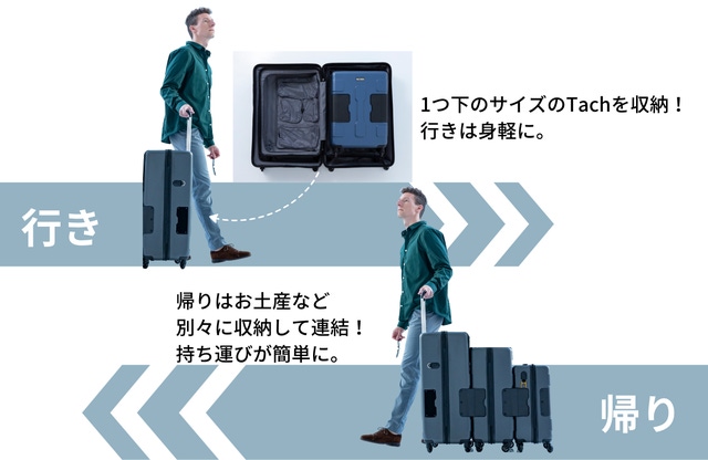 小さいサイズのスーツケースを、大きいサイズに収納することができるので、帰りにスーツケースを増やして荷物を持ち運べます。