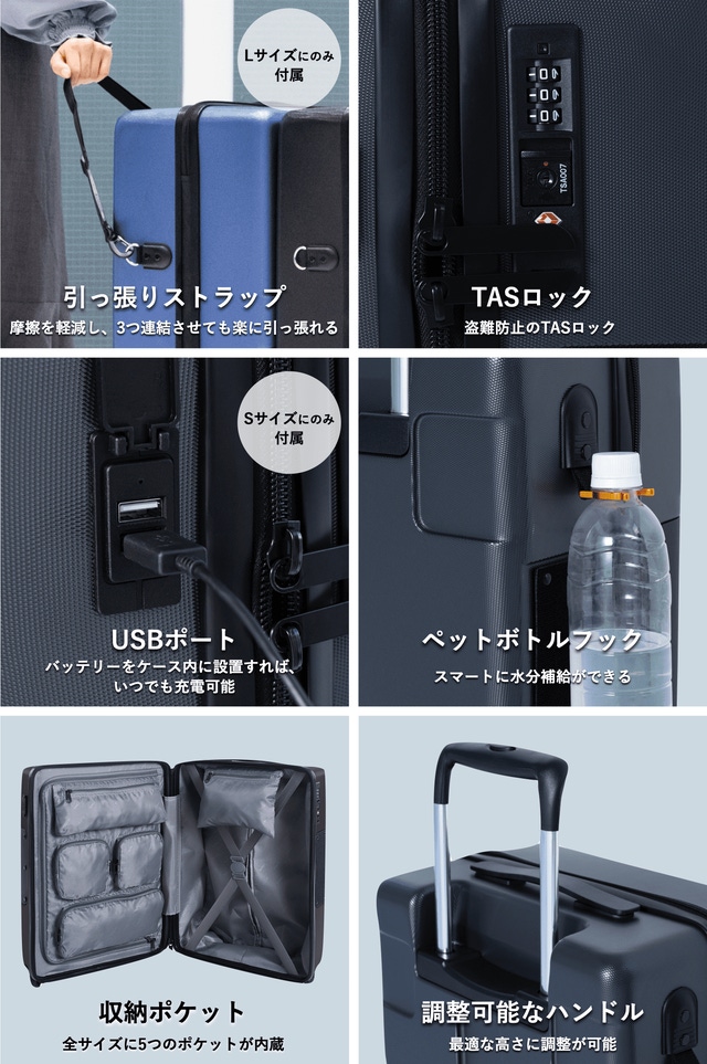 - 旅をより快適にする、連結機能。SMLサイズが自由に接続/切り離しできる。