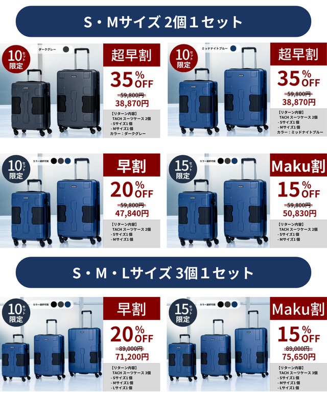 【Maku割】TACH スーツケース S・M 2個1セット /先着15名様