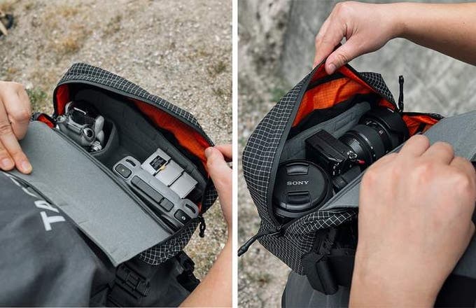 - カメラ、レンズ、ドローンや日用品をまとめて収納可能。1つのバッグで多用途
