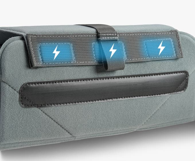インサートの背面には2本のフックアンドループストリップが備えられており、バックパック内のループ面にしっかりと取り付けられます。激しい運動の中でも安定して固定され、ずれを防ぎます。
