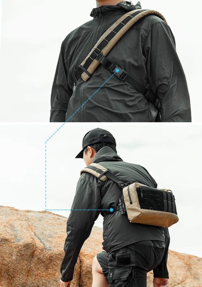 ストラップは TG Code 接続バックルを通じてバッグに取り付けられ、携帯スタイルや位置を柔軟に調整できます。左右の肩への切り替えも簡単で、水平持ち、クロスボディ、チェストバッグ、ウエストパックなど、さまざまなモードをシーンに合わせて選択可能です。