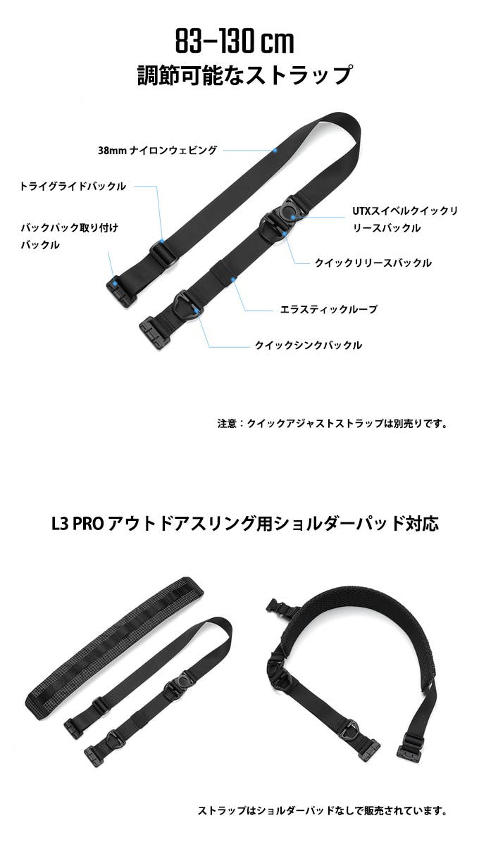 L3 PRO スリングバッグ(T500 ブラック)は、多機能で都市でも自然でも使いやすいバッグです。