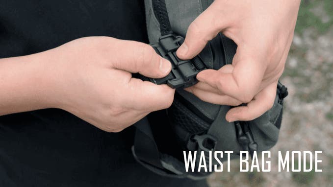 デュアル調節可能なショルダーストラップは最短22cmまで短くでき、ウエストバッグとしての使用も可能です。