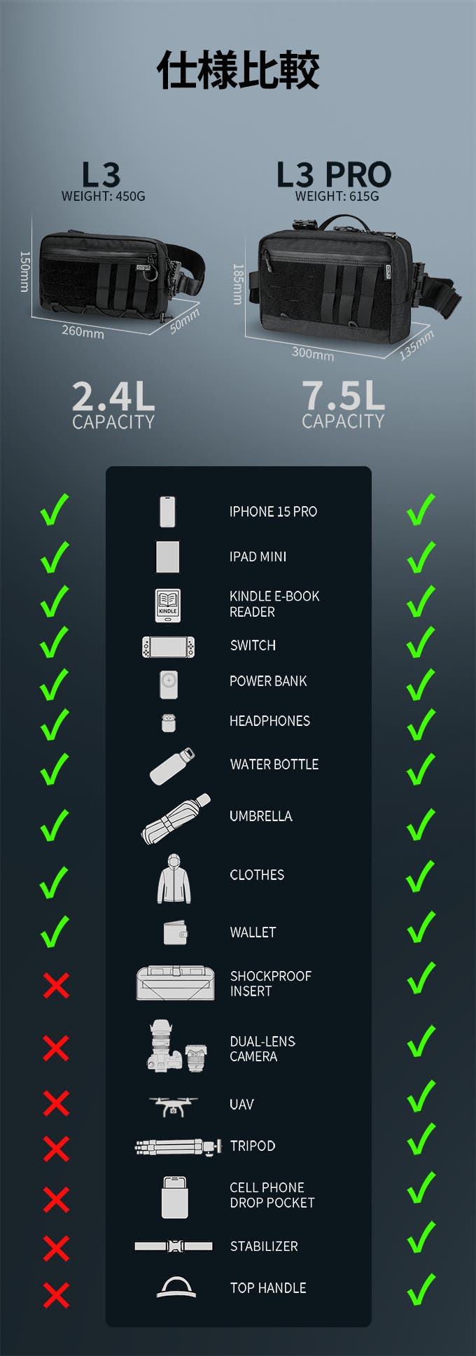 L3 PRO スリングバッグ(T500)は、都市でも自然でも使いやすい多機能バッグです。