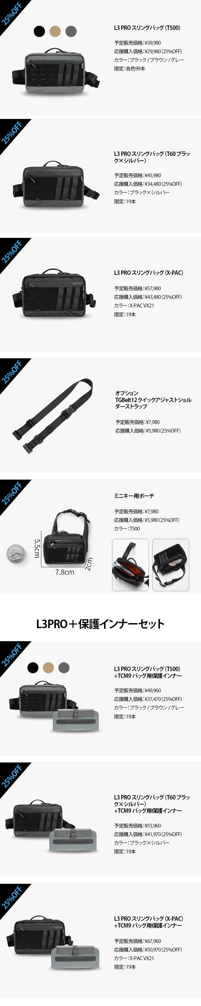 早割 L3 PRO スリングバッグ T500 ブラック+インナー