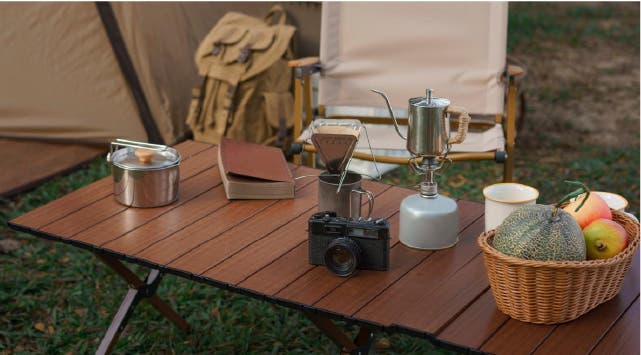 四角形で転がらず安定。野外でも快適な食事時間を。