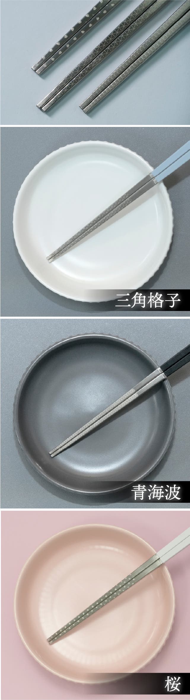 箸先にパターン刻印を入れることができます。3種類の和柄からお選びいただけます。
