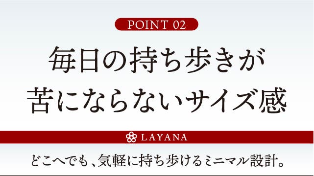 毎日使うものだからこそ、何気なく手が取れるような便利さが欲しい。LAYANA TAHASIは、触れた瞬間から使いやすく、一目見て惹かれるような構造美。持つたびに誇らしい気持ちになれる、日常に寄り添う小さな相棒です。