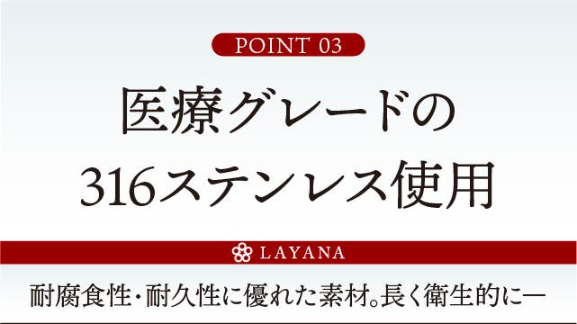 素材へのこだわりは、TAHASIの本質。外科用メスや医療機器に使われるほど高耐腐食性に優れ、塩分や酸にも強い「316ステンレス」を採用。