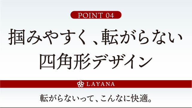 カチッとロックが決まる確かな手応えへの進化。LAYANA TAHASIは新発想の“回転ロック構造”を採用しています。クルッと回せば箸先がぴたりと固定され、快感と機能美が融合。持つ人だけが知る満足感を手にしてください。