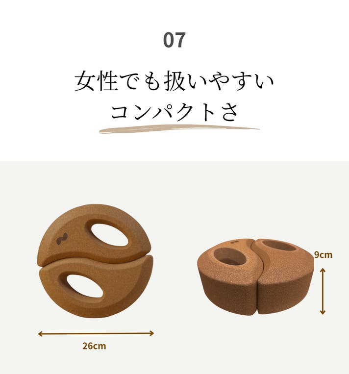 角を丸く加工することで安定感が増し、体重をかけても痛くなりにくい仕様に。肌ざわりの優しいコルク調仕上げも魅力です。