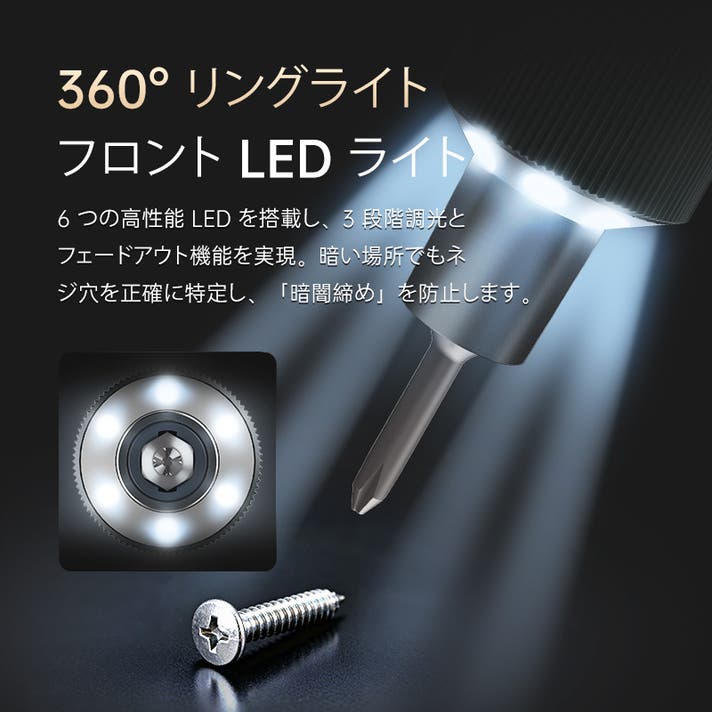 急に消えないため、暗い場所でもネジの締め具合を落ち着いて確認でき、最後まで安定して作業を続けられます。