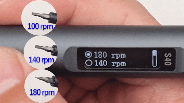 S40 / S40P は、ともに 3段階の回転スピード設定に対応。作業内容やネジのサイズに応じて、最適な回転速度を選択できます。低速から高速まで安定した回転制御により、精密作業から効率重視の作業まで幅広く対応します。