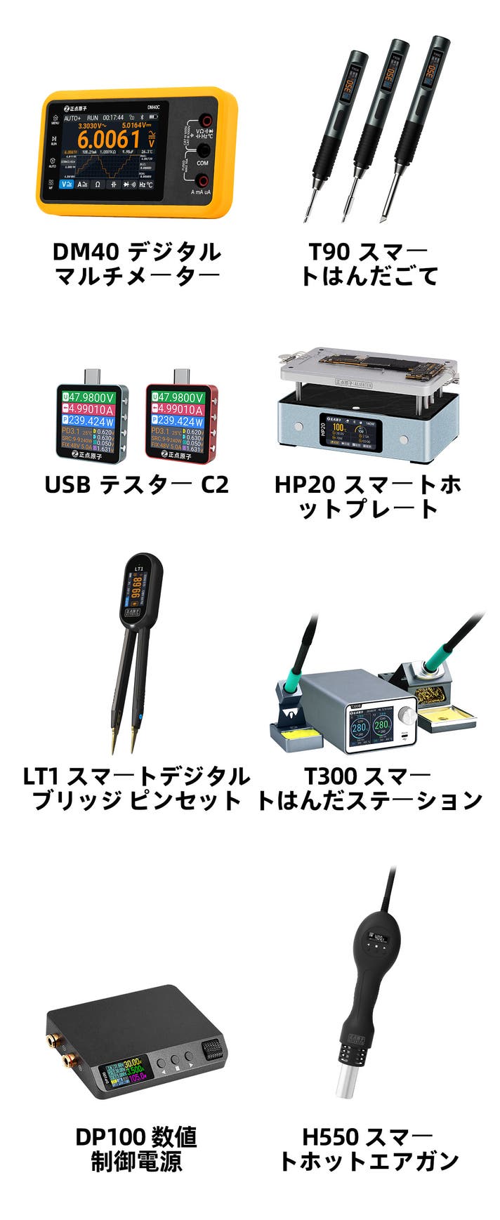 さらに Alientek は、組み込み開発プラットフォームにとどまらず、プロフェッショナルユーザーから DIY 愛好家まで を対象に、マルチメーター、オシロスコープ、各種電子測定機器、はんだごてなどの電子工具・測定機器の設計・製造 も行ってきました。