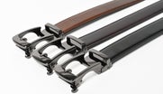 ブラックニッケル仕上げのバックルが、洗練された大人の印象を演出します。