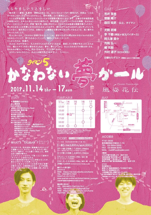 タイマン3年ぶりとなる公演は、2014年に池袋のスタジオで上演された『かなわない夢ガール』の大改訂版。