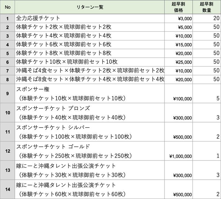ゴールド/年間スポンサーチケット(体験チケット250枚×琉球御前セット250枚)