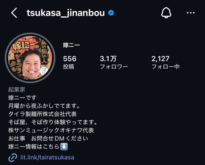 国際通りで「じなんぼう」という居酒屋を13年間続ける中で、たまたまテレビで取り上げられたことがきっかけで、「嫁が好きな兄ぃ兄ぃ=“嫁ニー”」として、ありがたいことに多くの方に知っていただけるようになりました。