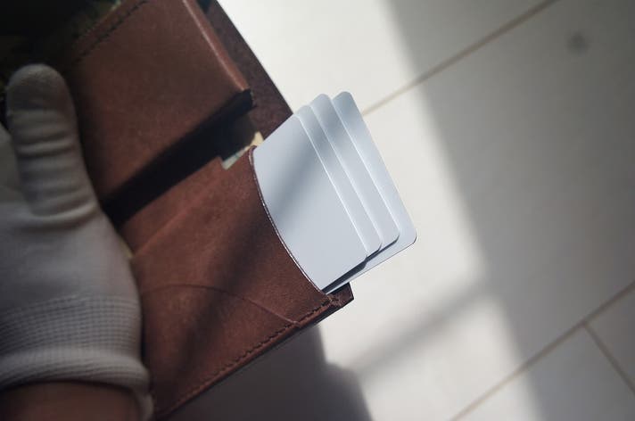 カード入れは筒状のシンプル設計。3枚収納を推奨。