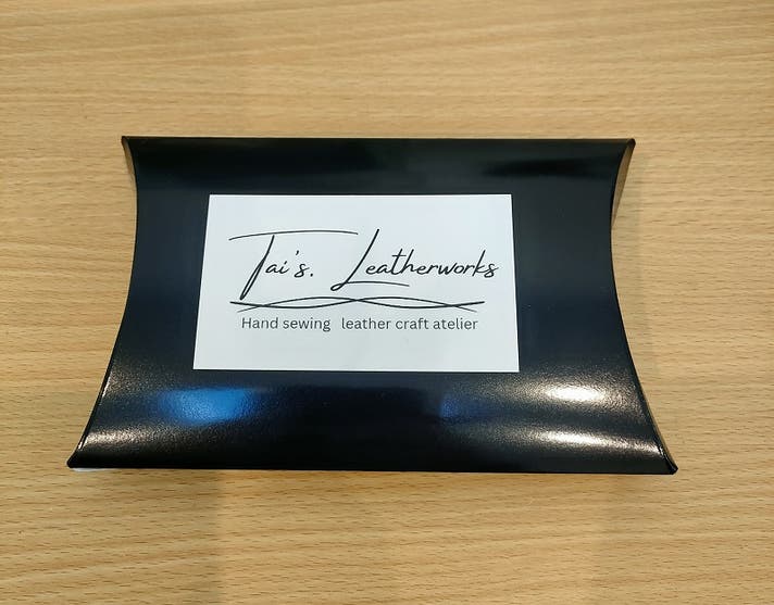 2021年5月より、BASEショップ「tai's leatherwoks」を運営し、手縫いで革財布や革小物を製作・販売しています。