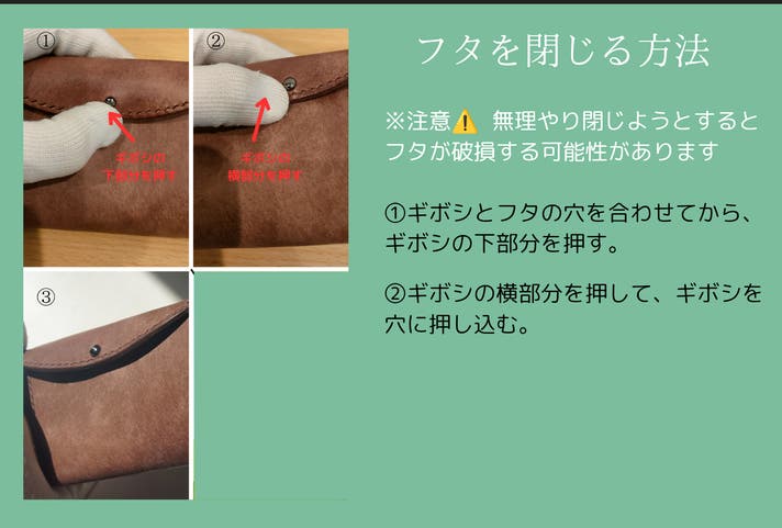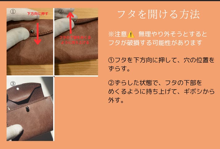 A.・・・・・・修理が必要な場合は、アフターサービスでご対応致しますので、お手数ですが、tai's leatherworksのBASEショップにお問合せ頂き、破損内容をご報告ください。内容確認の上、ご対応致します。(往復送料はお客様負担になります)