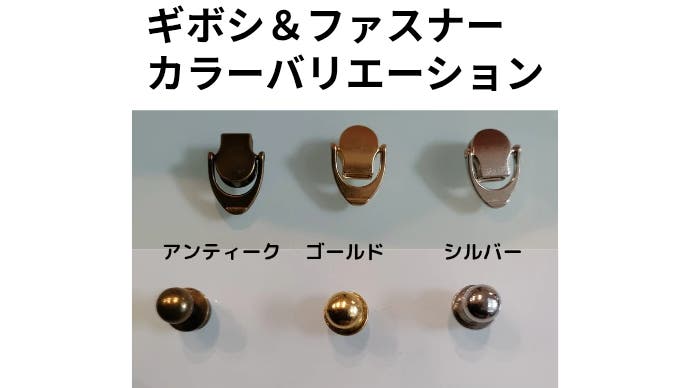 ※ ギボシ及びファスナースライダーは、共通のカラーを1つ選択できます。