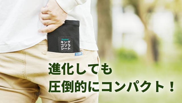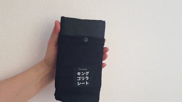 『キングゴリラシート』は折りたたんで収納袋に入れた時は約19cm×11.5cmの手のひらサイズ!圧倒的コンパクトサイズです。ポケットやバッグにサッと収納して忍ばせておけば、素敵なお出かけになること間違いなし!