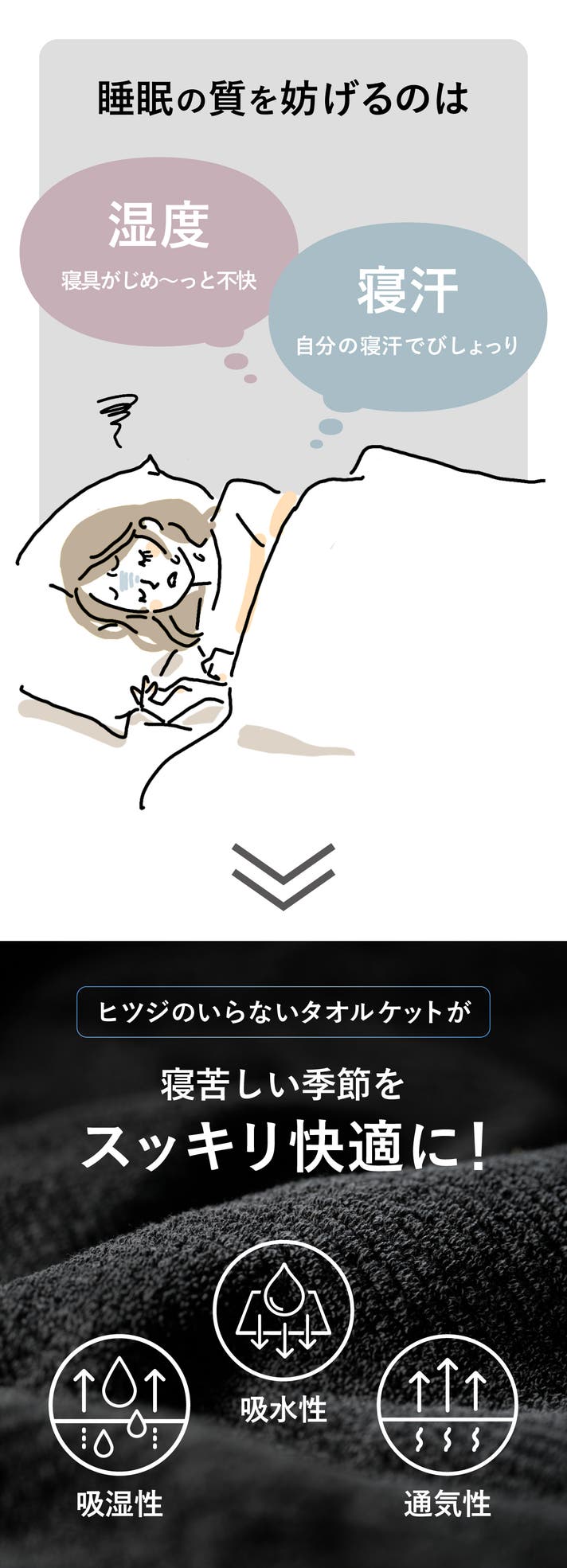 湿気と寝汗にアプローチ。