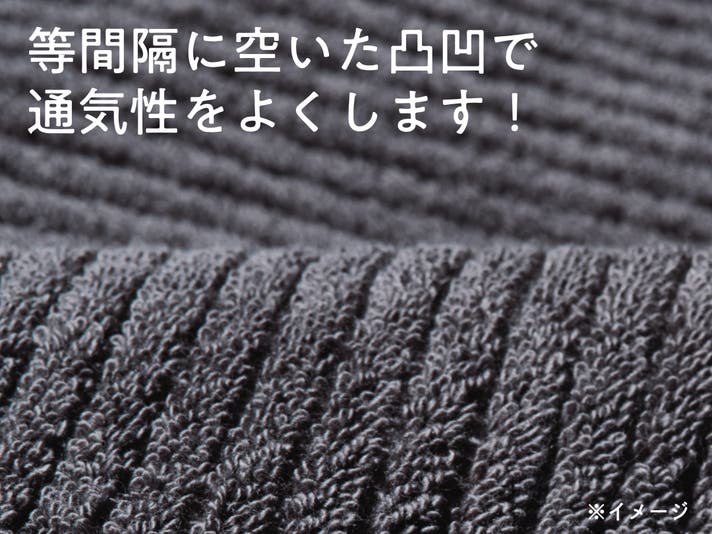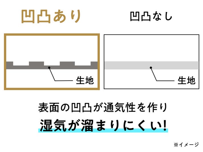 独自の凹凸ラインで、空気の通り道をデザイン。不快な熱や湿気を逃がし、サラッとした肌触りを実現。