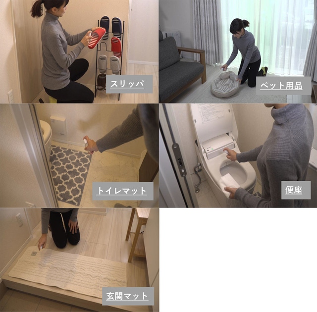 ・ペットのクッション、トイレの便座、トイレマットの除菌・抗菌など。