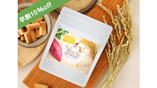ワンちゃんと飼い主さんが分け合って食べれる本商品は米粉とさつまいもだけで作られた体にやさしいおやつです。