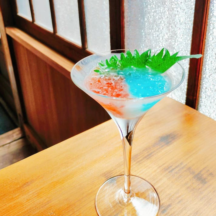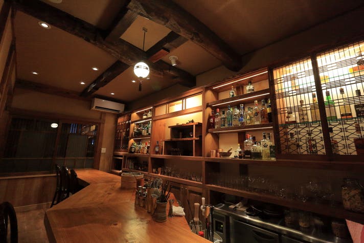 1階BAR新井建具店は大正時代の建具に囲まれた店内で日本の四季の移ろいを感じる和のカクテルをお楽しみいただけます。2階とはまた違う雰囲気とカクテルをお楽しみください。