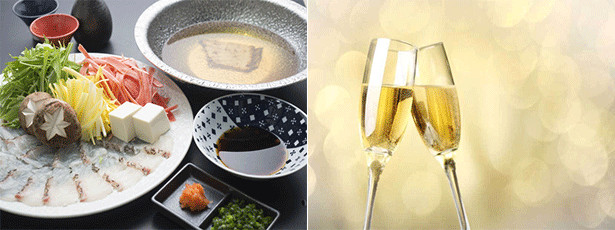 ・シャンパン”ペリエ ジュエ”飲み放題+桜鯛しゃぶしゃぶ鍋コース