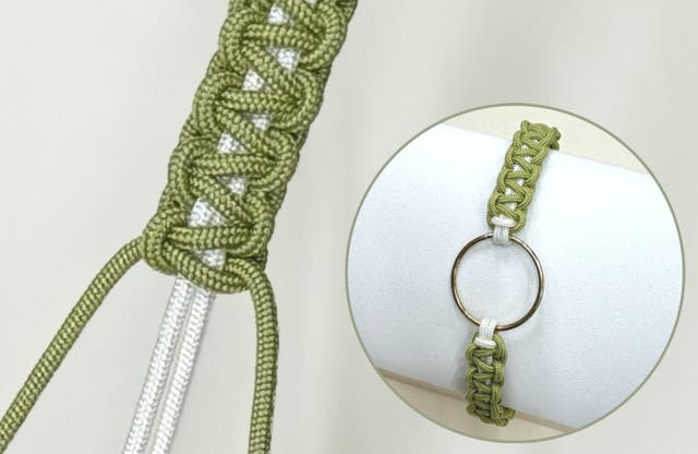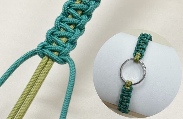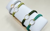 数珠につかう正絹の数珠紐で大切な形見をブレスレットに1つ1つ丁寧に結いあげます。