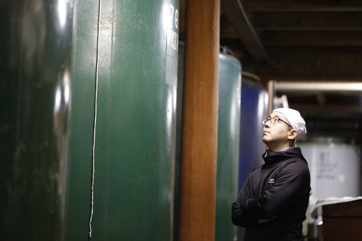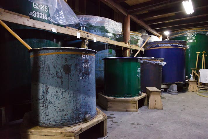 廃業した宝山酒造から引き継いだ大量の古酒を前にした、